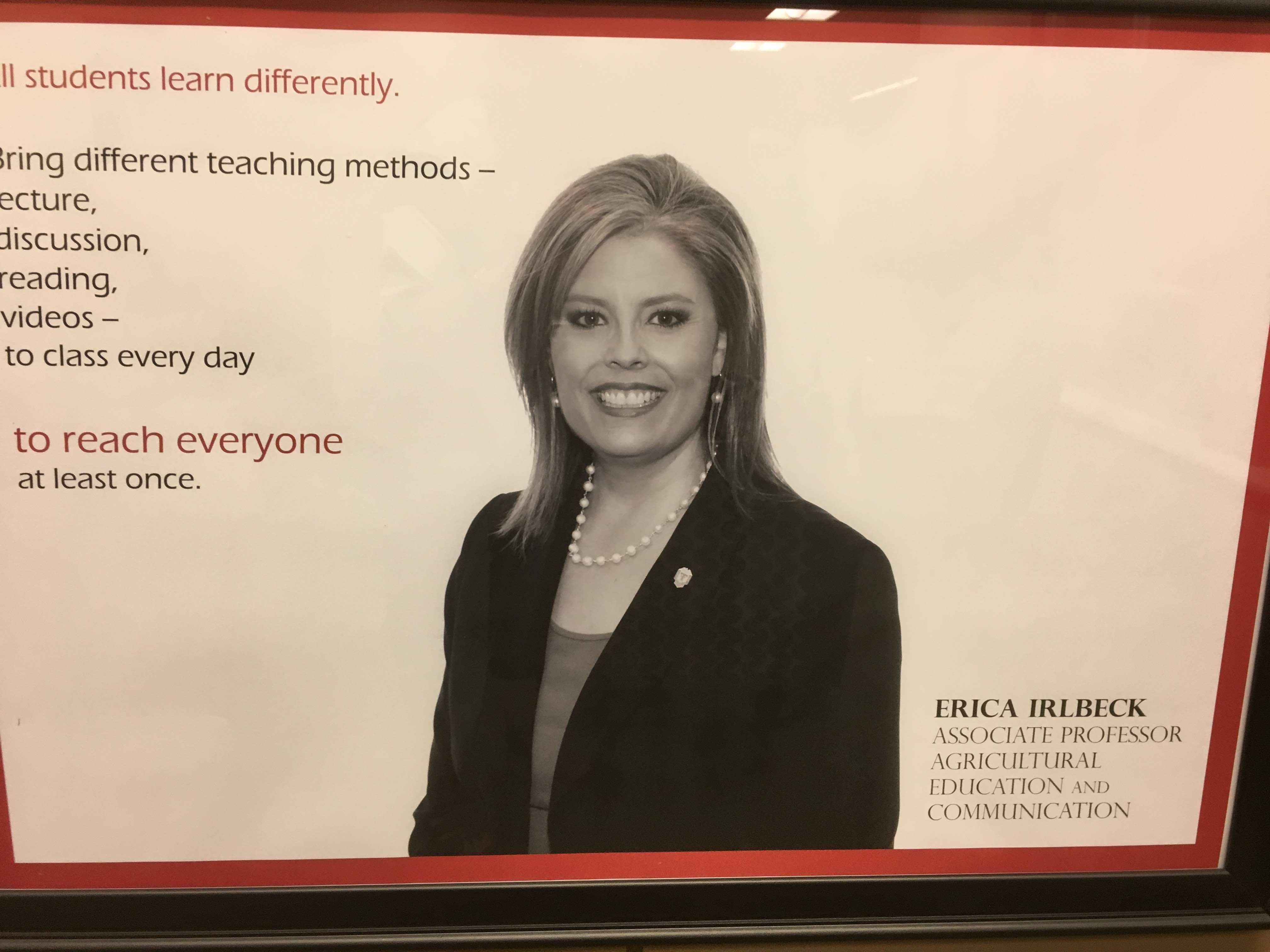 A goal I have as an instructor is to instill a good work ethic within my students. Part of what I teach is that positive attitudes and hard work will carry them far in their classes and later, their careers. Thus, my most important goal is to harness those good attitudes and work to create productive employees for the agricultural communications industry.